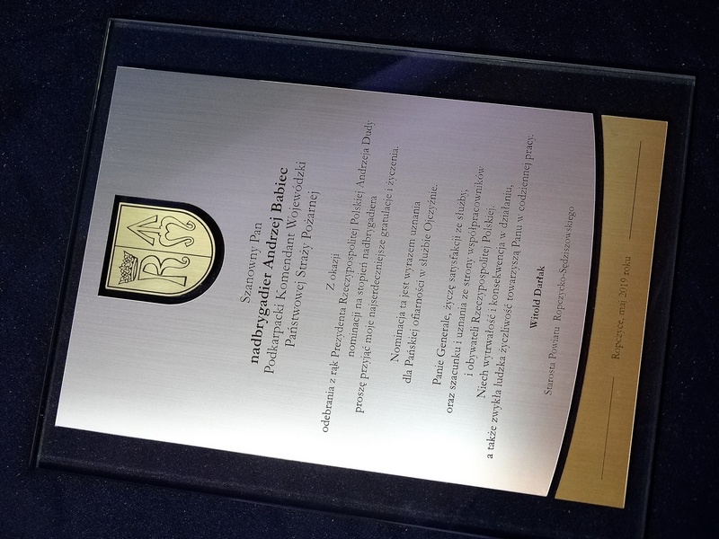 - z umieszczonych na szybie dopasowanych do siebie laminatów, z wygrawerowaną i nadrukowaną dedykacją, grafikami, herbami lub logotypami.