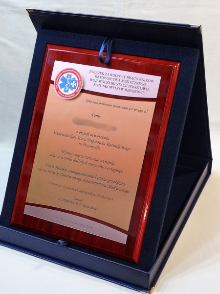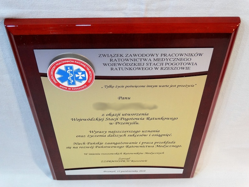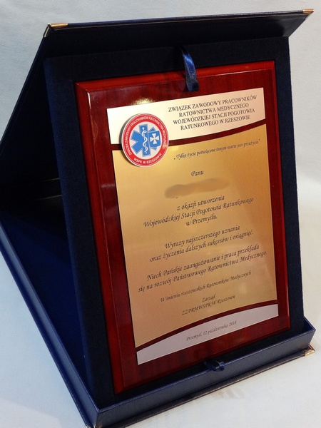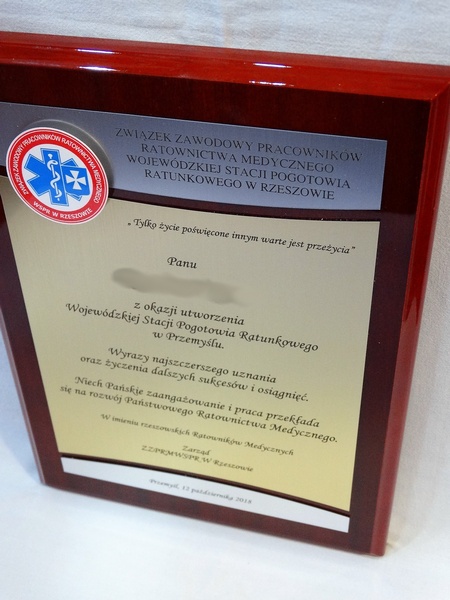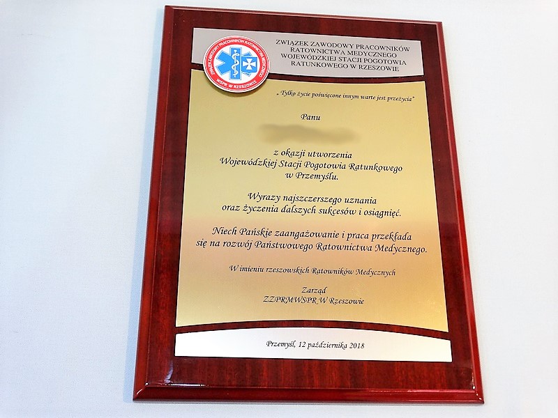 - z dopasowanych do siebie laminatów (srebrnego, złotego, czarnego) z grawerowaną dedykacją,