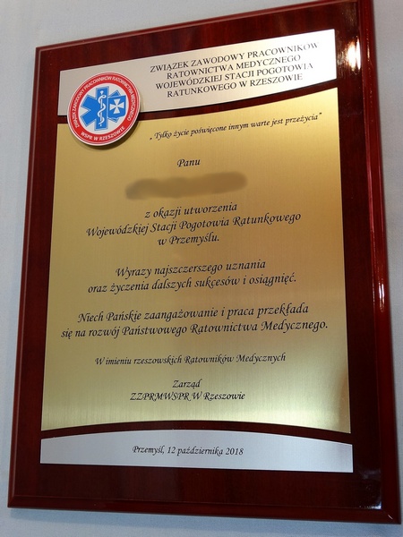 Pamiątkowy złożony dyplom okolicznościowy z wyrazami uznania z okazji otwarcia instytucji na drewnianym podkładzie, składający się: