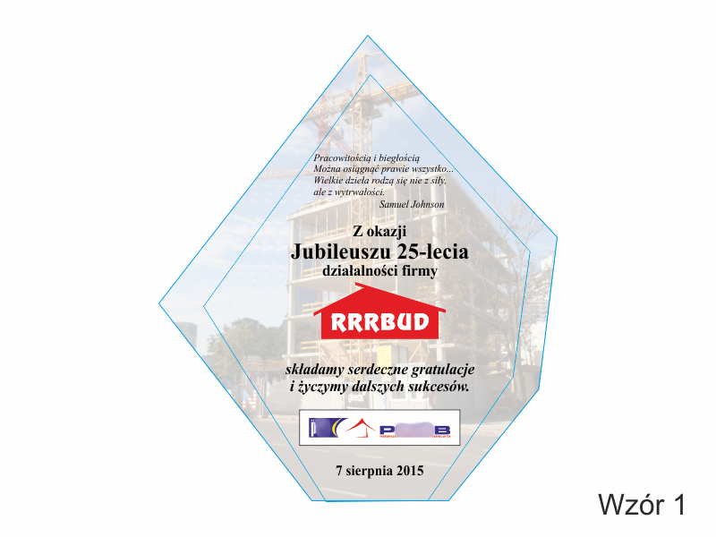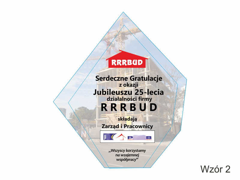 z nadrukiem dedykacji i grafik z okazji Jubileuszu działalności.