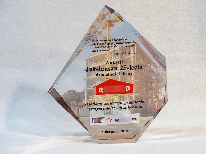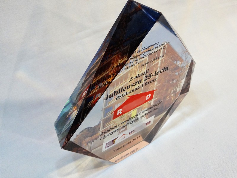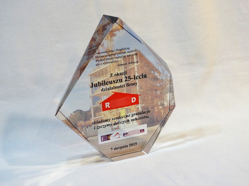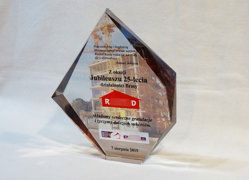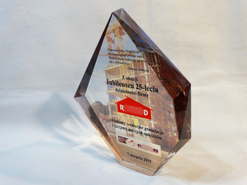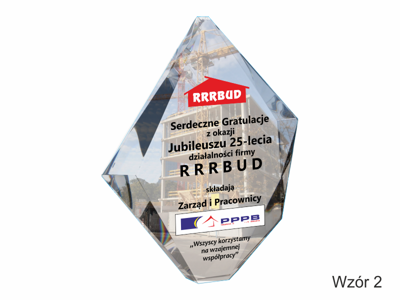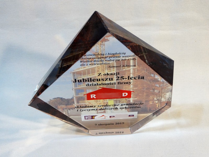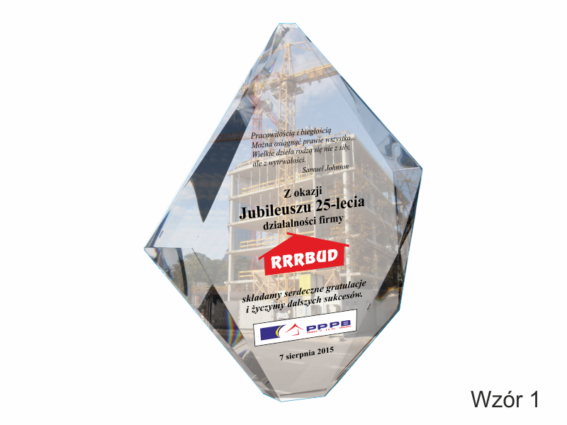 Można także wykonać statuetkę z okazji Jubileuszu na innym modelu statuetki szklanej.