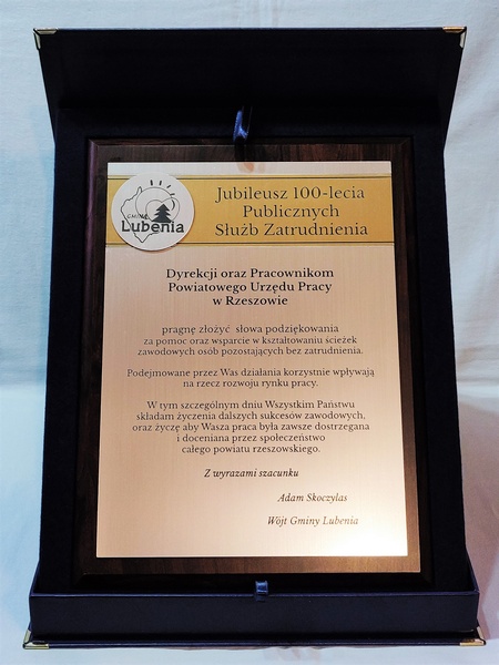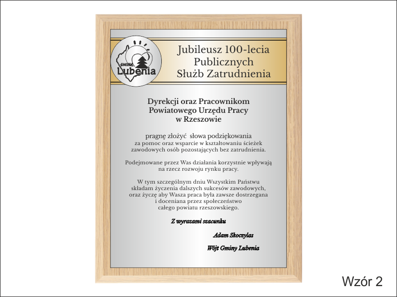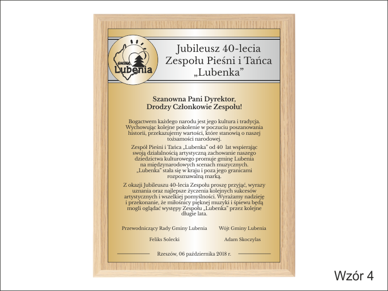 Prezentowany dyplom przeznaczony jest jako pamiątka z okazji jubileusz działalności instytucji, i wręczany jest w imieniu gminy, ale można wykonać go także na inną okoliczność.
