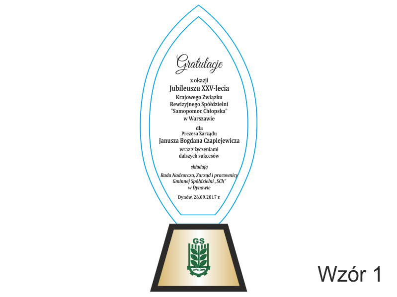 Istnieje możliwość graweru dedykacji wg indywidualnych ustaleń i projektu uzgodnionego z klientem lub wg jednego z wzorów.
