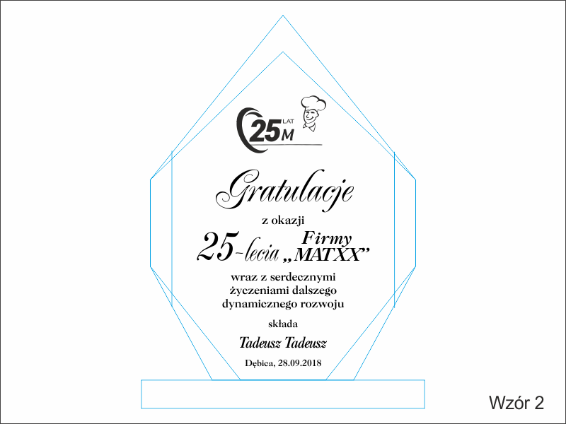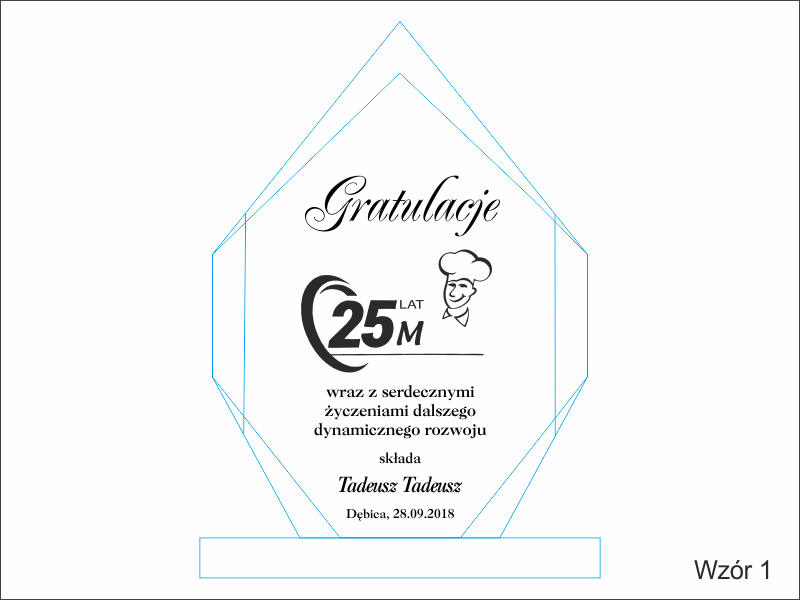 Istnieje możliwość graweru dedykacji wg indywidualnych ustaleń i projektu uzgodnionego z klientem lub wg jednego z wzorów.