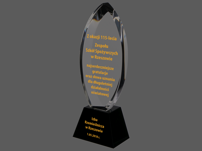 Dodatkowo na postumencie statuetki może być wykonany bezpośredni grawer lub tabliczka z dedykacją.