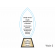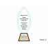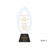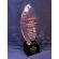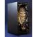 Statuetka ma kształt wydłużonego owalu pionowo osadzonego na czarnym trapezowym postumencie.