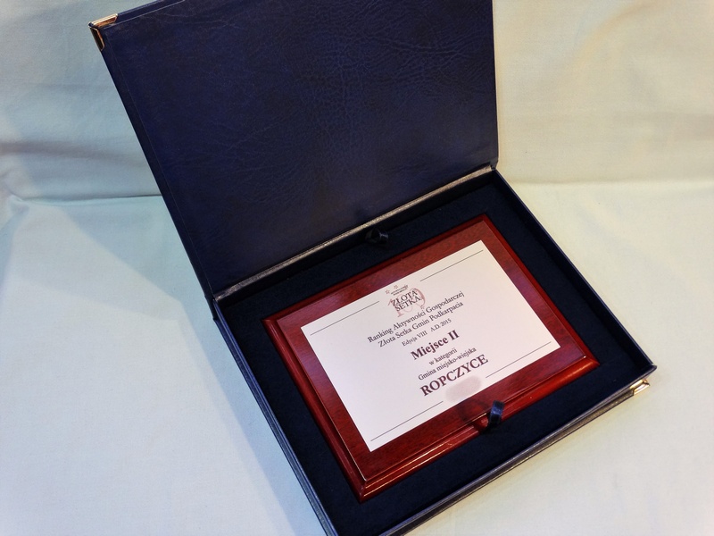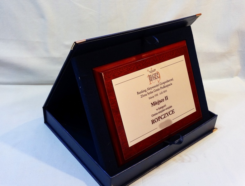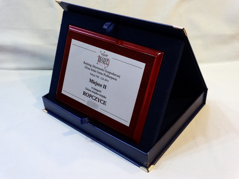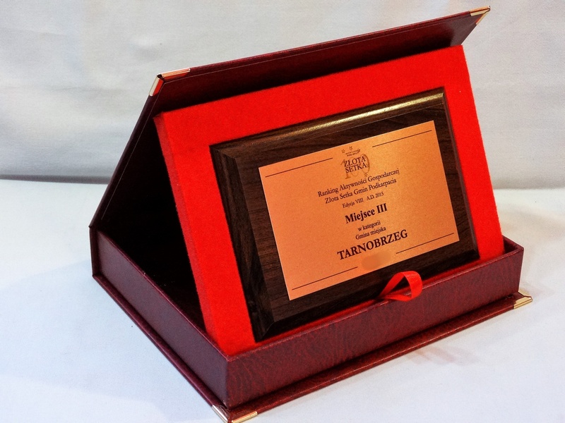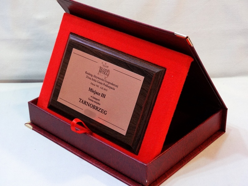 Nagroda, Wyróżnienie w postaci dyplomu okolicznościowego na drewnianym standardowym podkładzie z blachą z nadrukiem.