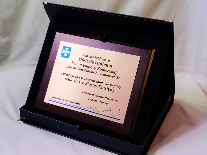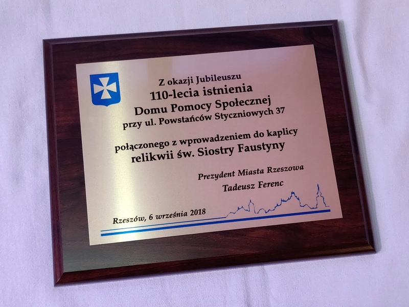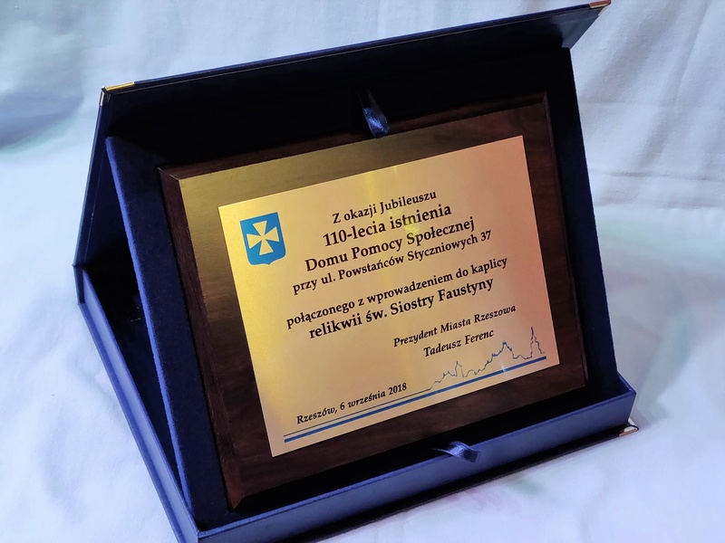Dedykacja, grafiki, herby nadrukowane są na blaszce w złotym, srebrnym lub brązowym odcieniu.