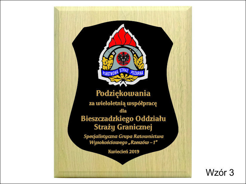 - z odznaki / herbu / logotypu nadrukowanego lub grawerowanego na osobnej pleksie lub laminacie,