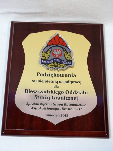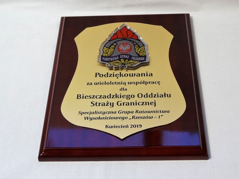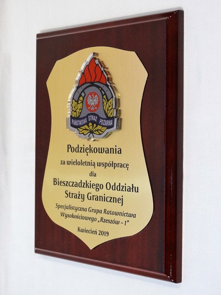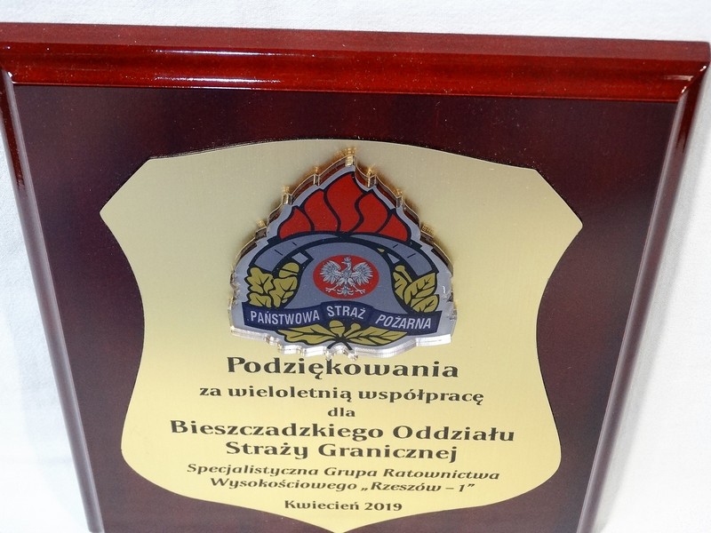 Podziękowanie za współpracę od strażaków w formie pamiątkowego dyplomu okolicznościowego.