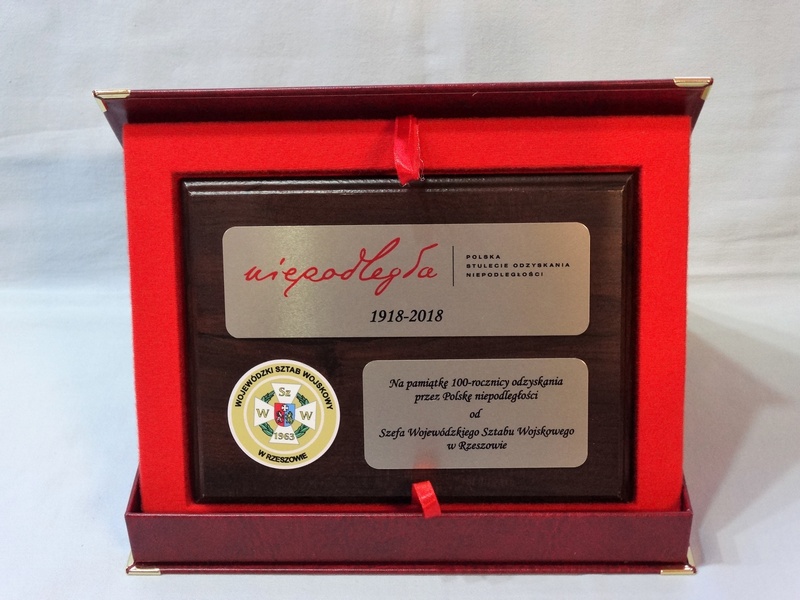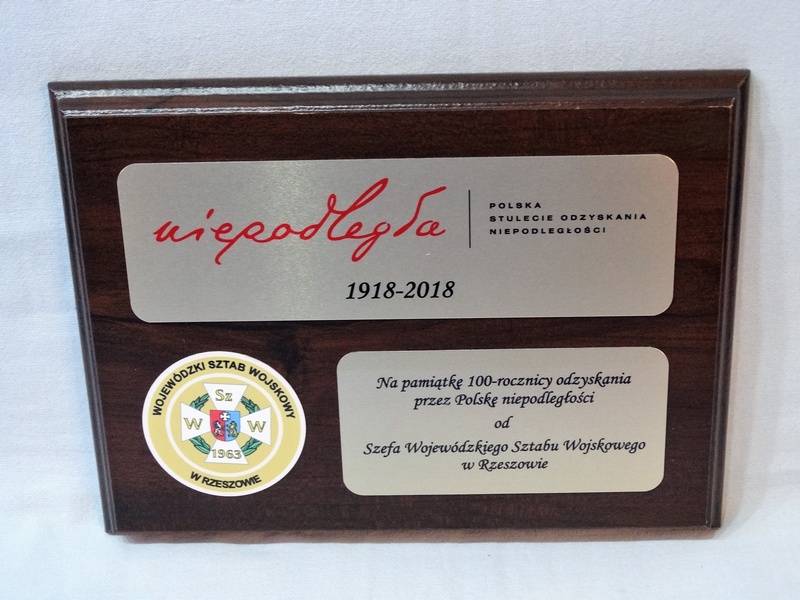 Dyplom drewniany w postaci pamiątkowego okolicznościowego Ryngrafu.