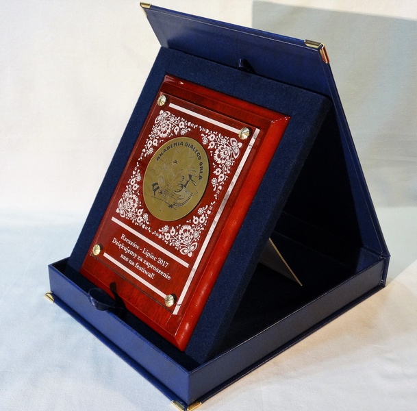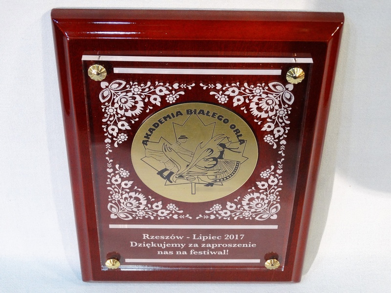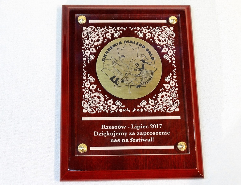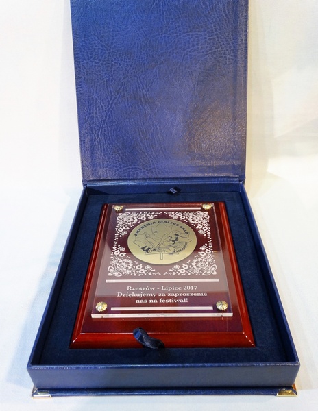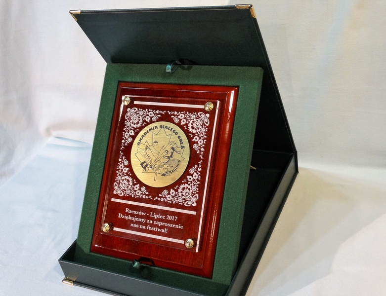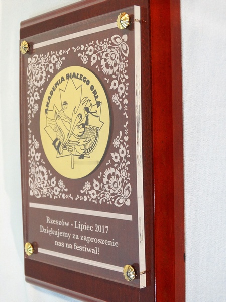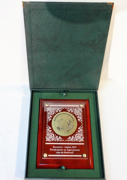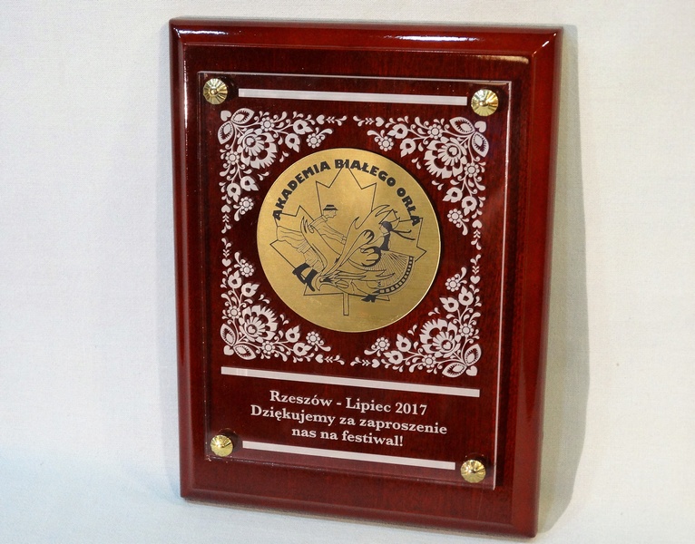 Pamiątkowy Ryngraf okolicznościowy w postaci dyplomu drewnianego, składający się: