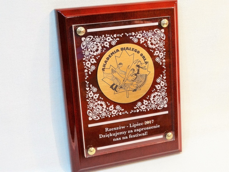 - z herbu / logotypu wyciętego i grawerowanego z laminatu