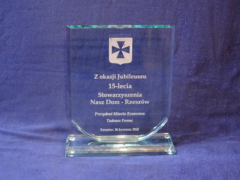 Można także wykonać pamiątkową statuetkę "jubileuszową" na innym modelu statuetki szklanej.