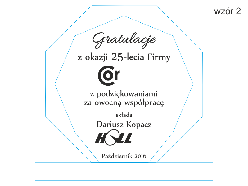 Istnieje możliwość graweru dedykacji wg indywidualnych ustaleń i projektu uzgodnionego z klientem lub wg jednego z wzorów.