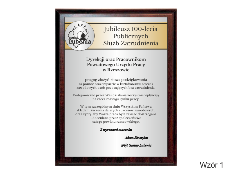 Istnieje możliwość wykonania dedykacji wg indywidualnych ustaleń i projektu uzgodnionego z klientem lub wg jednego z wzorów.