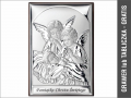 Aniołki nad dzieckiem z podpisem "Pamiątka Chrztu Świętego "- srebrny obrazek JAP 751
