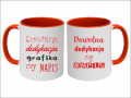 Kubek biały z czerwonym uszkiem i wnętrzem z nadrukiem