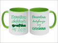 Kubek biały z zielonym uszkiem i wnętrzem z nadrukiem