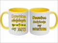 Kubek biały z żółtym uszkiem i wnętrzem z nadrukiem