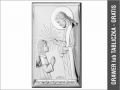 Pamiątka I Komunii Św. z Jezusem udzielającym Komunii dziewczynce - srebrny obrazek JAP761
