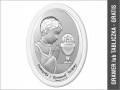 Pamiątka I Komunii Św. dla chłopczyka z podpisem - srebrny owalny obrazek na białym drewnie 6571OW
