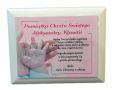 Pamiątka Chrztu - podkład biały z nadrukiem "Rączek" i dedykacji