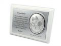 Pamiątka I Komunii Św. dla chłopczyka - srebrny obrazek 6571/1XO na srebrnej tabliczce i białym podkładzie