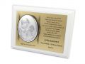 Pamiątka I Komunii dla chłopczyka - srebrny obrazek 6571/1XO na złotej tabliczce i białym podkładzie