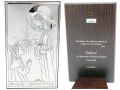 Pamiątka I Komunii Św. - srebrny obrazek JAP761 z Jezusem udzielającym Komunii dziewczynce z grawerem