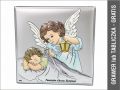 Aniołek z latarenką nad dzieckiem w kwadracie z podpisem - srebrny obrazek kolorowy DS14/C