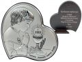 Pamiątka I Komunii Św. dla chłopczyka - srebrny obrazek w sercu DS03/O z grawerem
