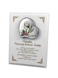 Pamiątka I Komunii Świętej - kolorowy srebrny obrazek serce na białym podkładzie z grawerem