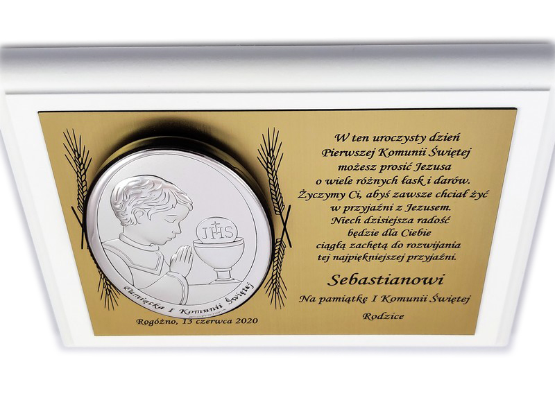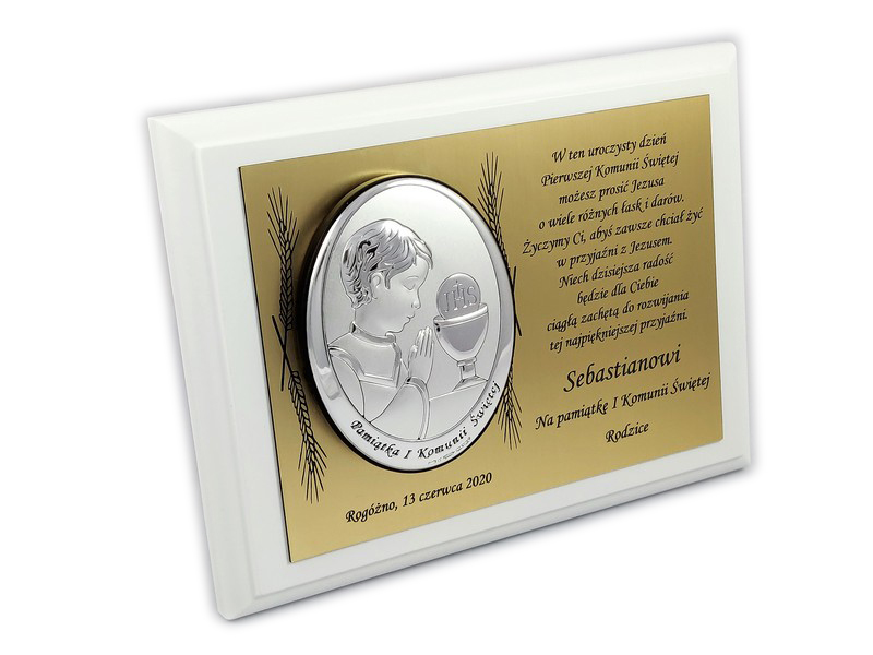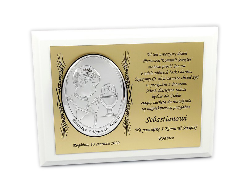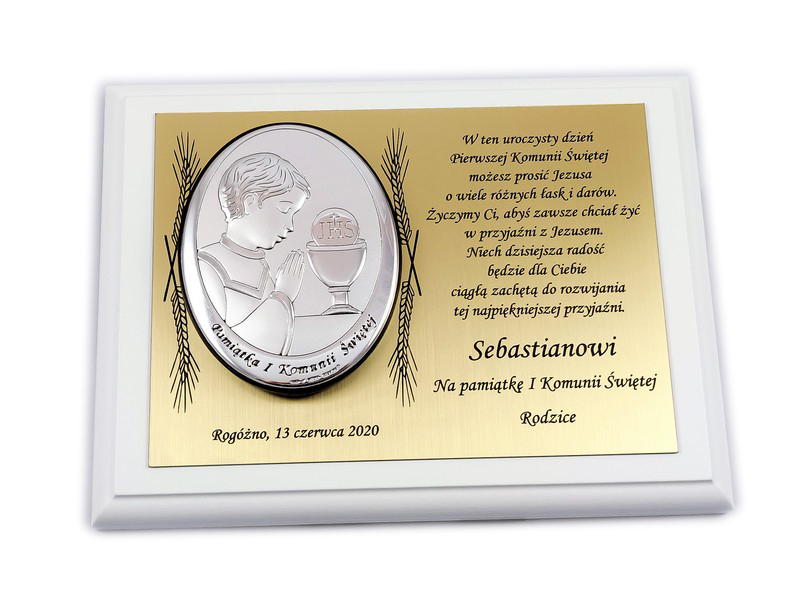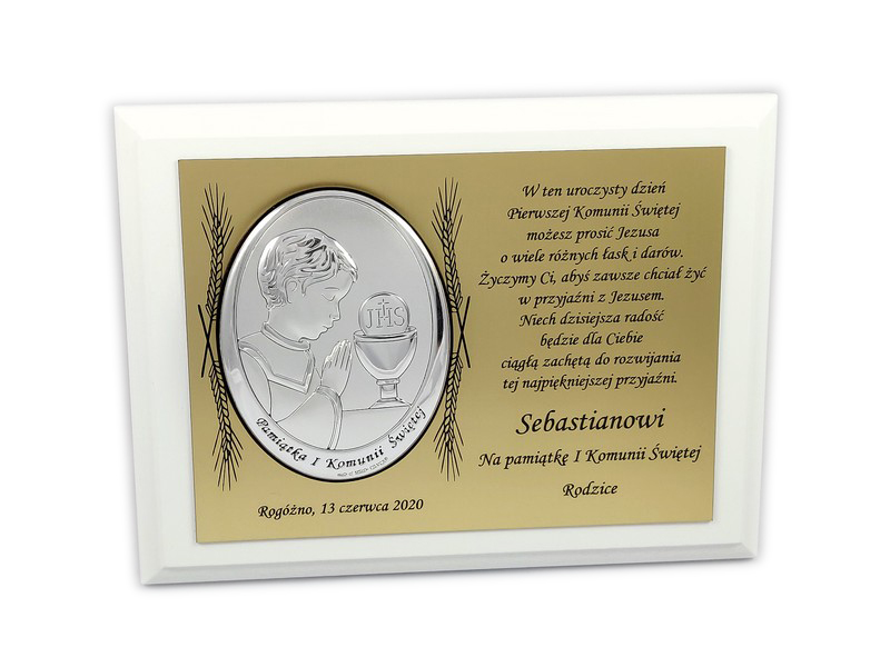 Wyjątkowy pamiątkowy upominek z okazji przyjęcia Pierwszej Komunii Świętej dla chłopczyka.