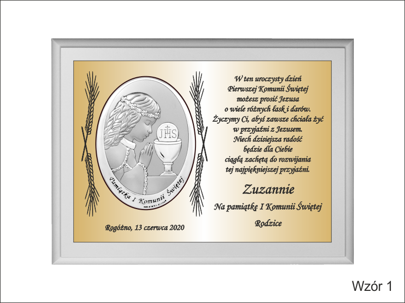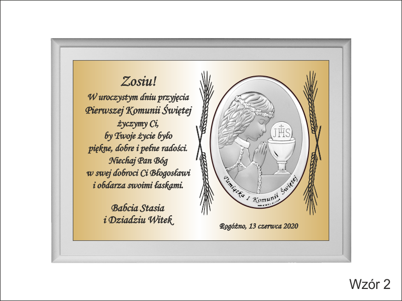 Istnieje możliwość wykonania pamiątki wg jednego z przedstawionych wzorów lub wg indywidualnych ustaleń i projektu.
