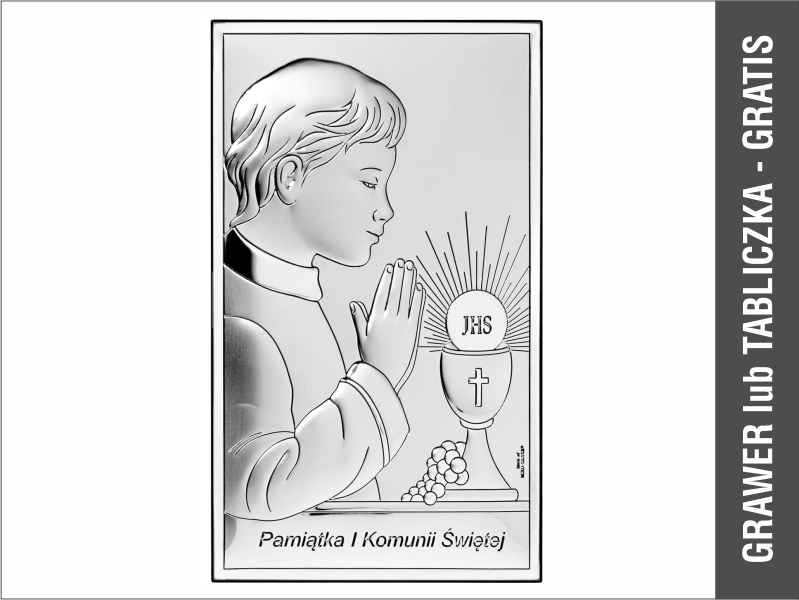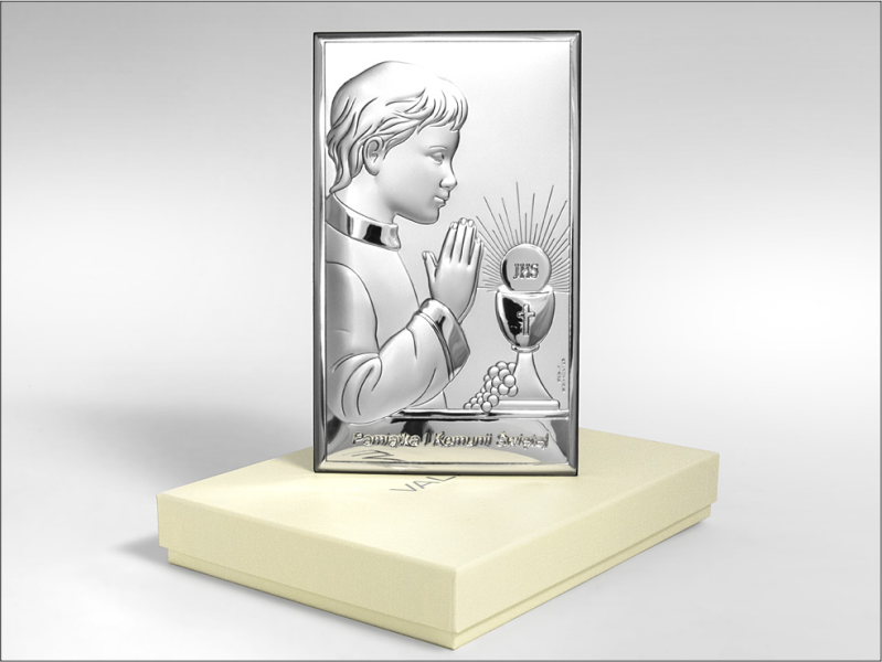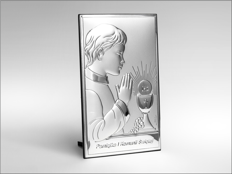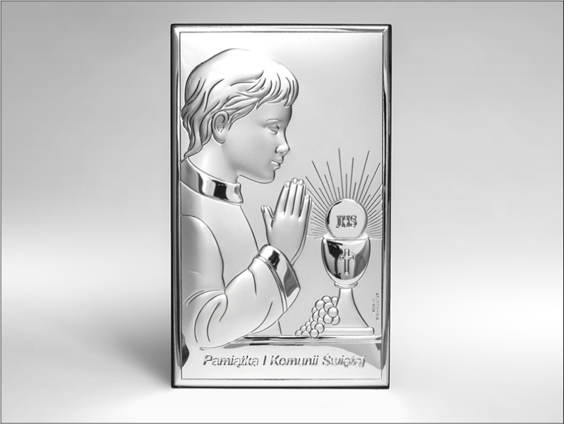 Srebrny Obrazek "Pamiątka I Komunii Św. z chłopczykiem prostokątny JAP758".