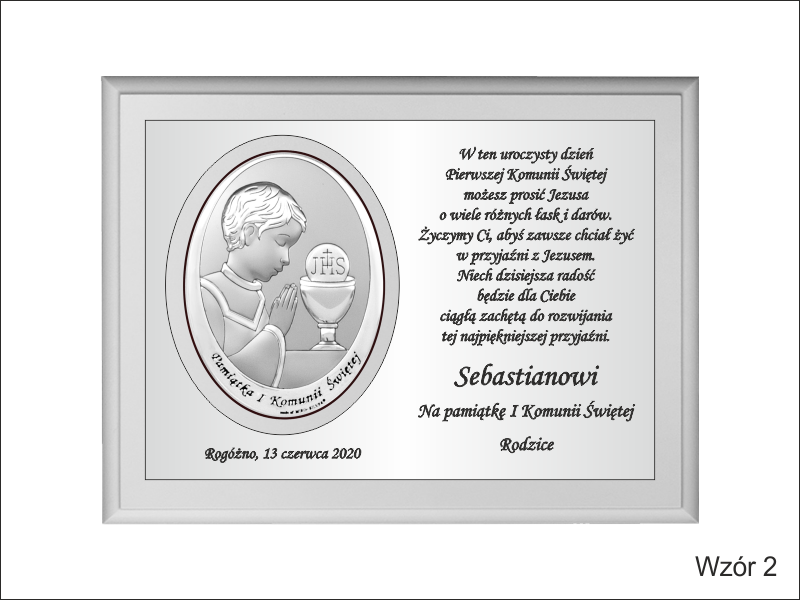 Istnieje możliwość wykonania pamiątki wg jednego z przedstawionych wzorów lub wg indywidualnych ustaleń i projektu.