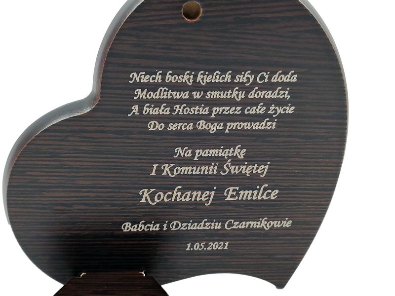 Grawer dedykacji wykonany jest bezpośrednio w drewnie lub na osobnej dołączonej tabliczce.