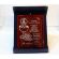Dyplom składa się z wyciętej akrylowej płytki zgrawerowaną dedykacją i ozdobnymi grafikami oraz lakierowanego wiśniowego podkładu drewnianego. Płyta pleksi mocowana jest do podkładu za pomocą ozdobnych pinezek tapicerskich.