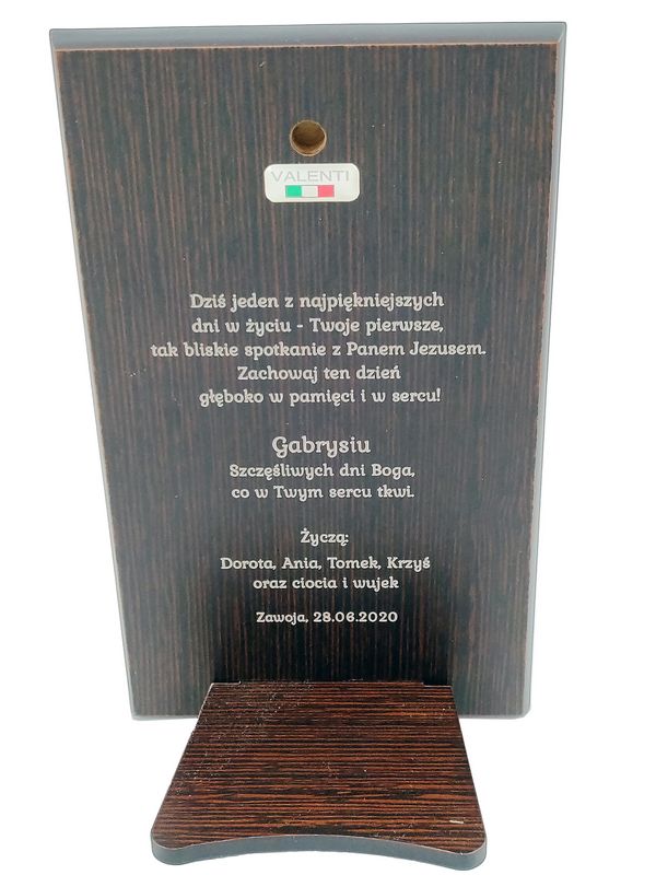 Grawer dedykacji wykonany jest bezpośrednio na drewnie lub też na dołączonej tabliczce.