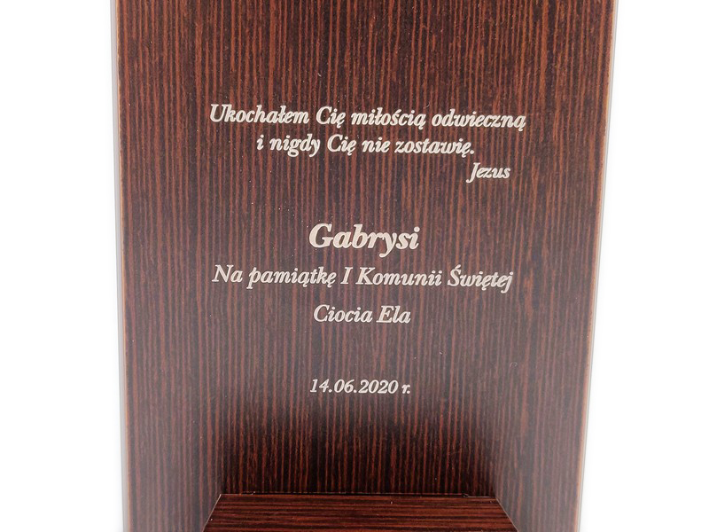 Grawer dedykacji wykonany jest bezpośrednio na drewnie lub też na dołączonej tabliczce.