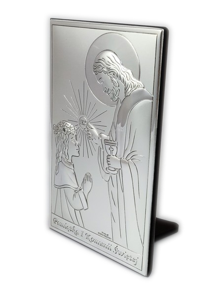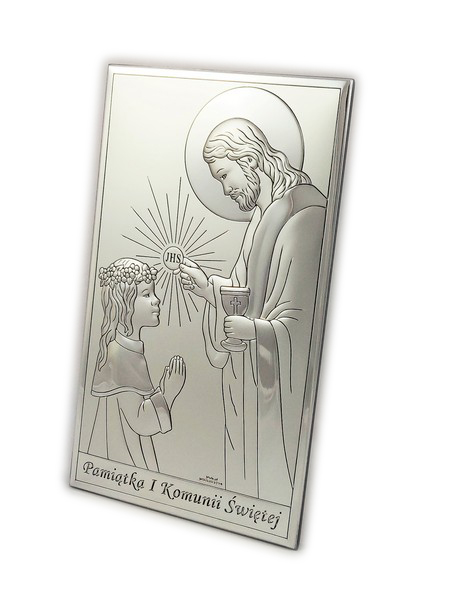 Srebrny obrazek to doskonały prezent na pamiątkę przyjęcia Sakramentu I Komunii Świętej lub Rocznicę I Komunii Św.