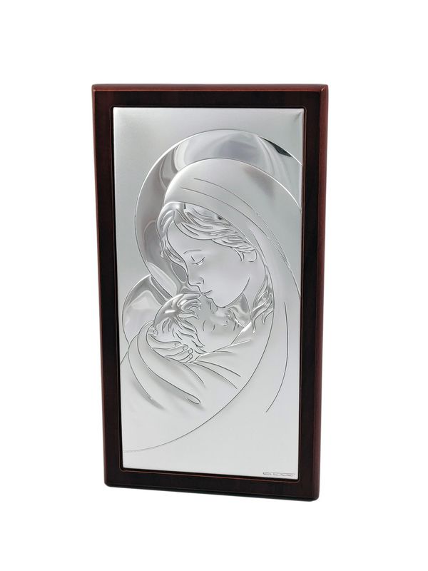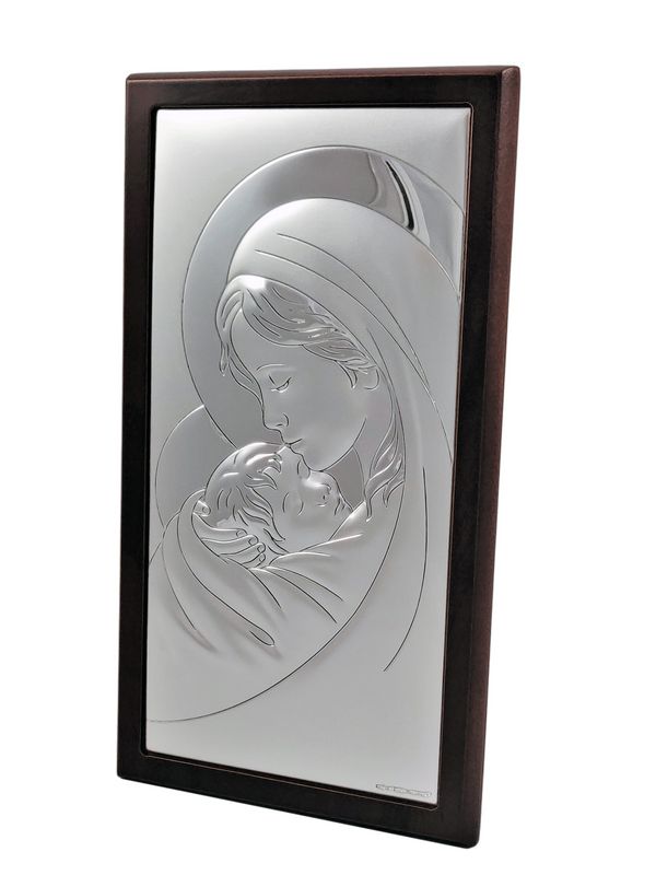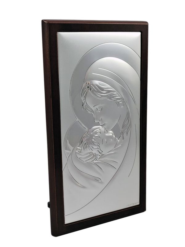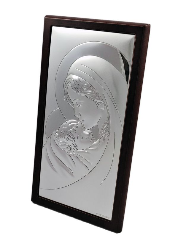 Srebrny obrazek to "Matka Boża z dzieciątkiem prostokątna na drewnie - 6381WM".