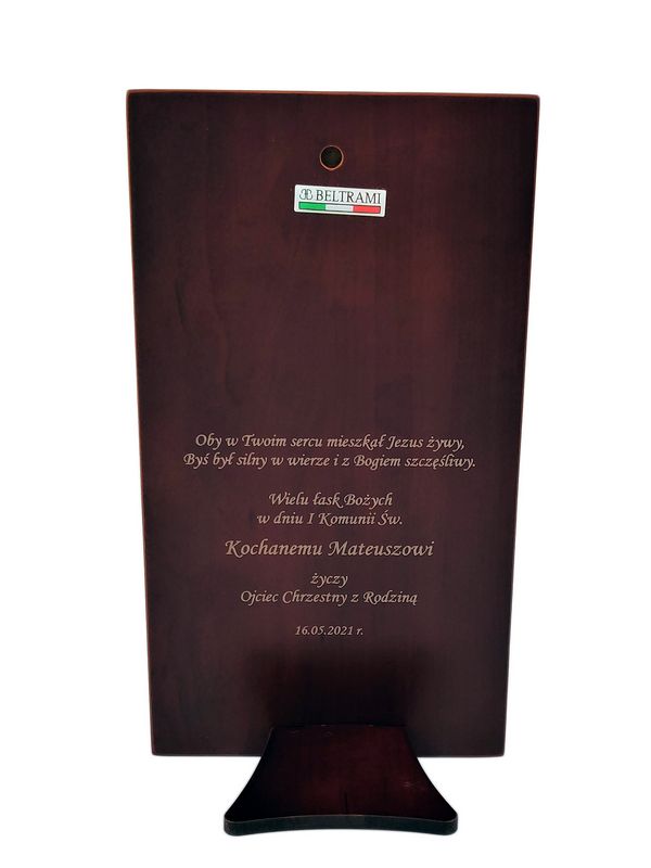 Grawer dedykacji wykonany jest bezpośrednio na drewnie lub też na dołączonej tabliczce.