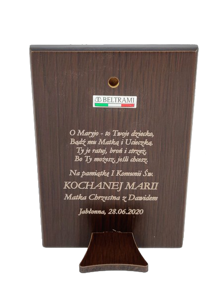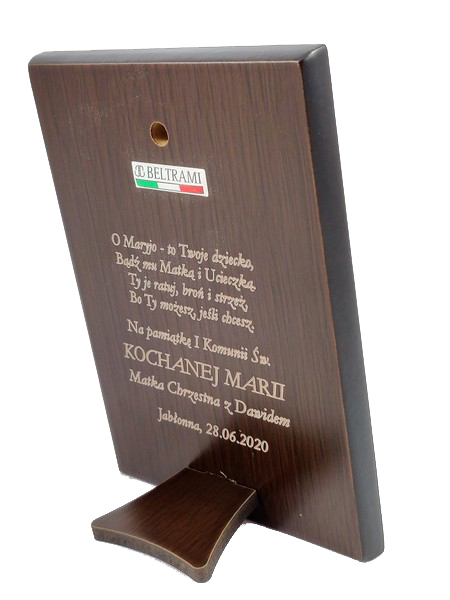 Grawer możliwy jest w drewnie na odwrocie obrazka lub na dołączonej tabliczce.