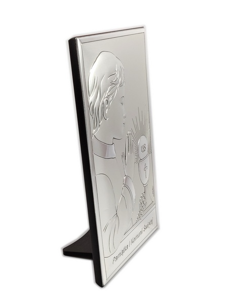Srebrny obrazek to doskonały prezent na pamiątkę przyjęcia Sakramentu I Komunii Świętej lub Rocznicę I Komunii Św.