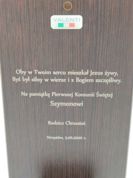 Grawer dedykacji wykonany jest bezpośrednio w drewnie lub też na dołączonej tabliczce.