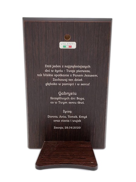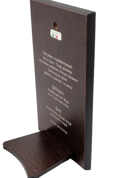 Grawer dedykacji wykonany jest bezpośrednio na drewnie lub też na dołączonej tabliczce.