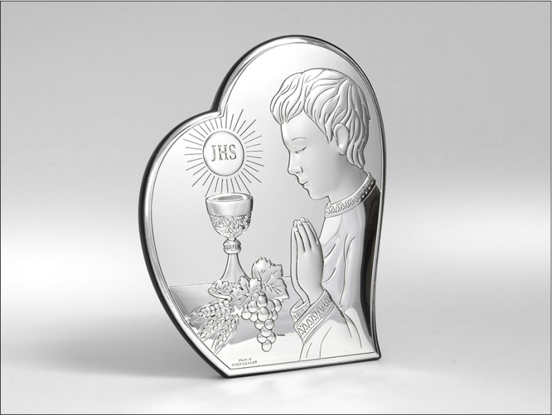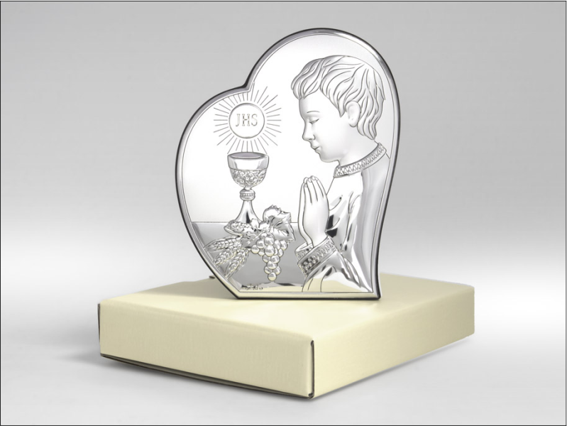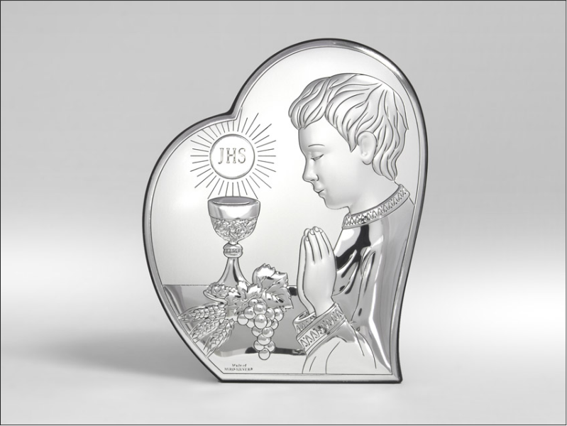 Srebrny Obrazek "Pamiątka I Komunii Św. z chłopczykiem w sercu 81123".
