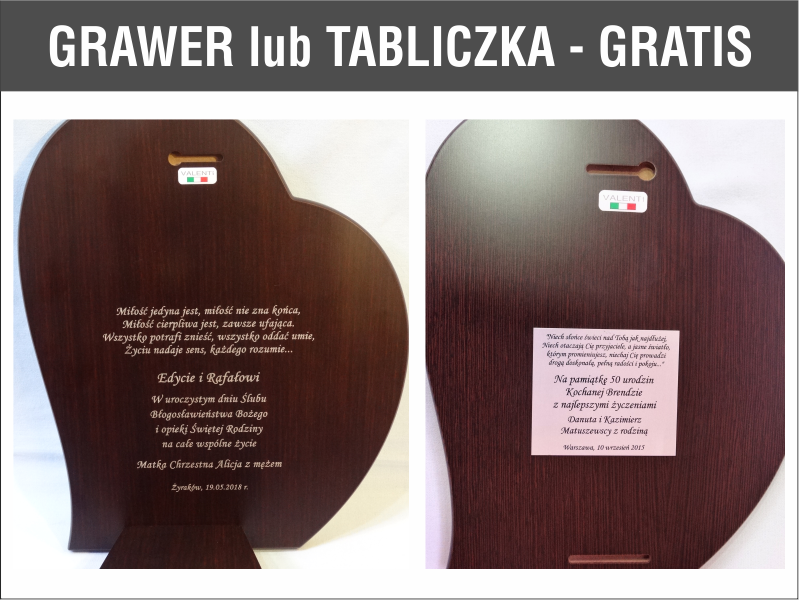 - z możliwością indywidualnego graweru lub tabliczki z grawerem GRATIS